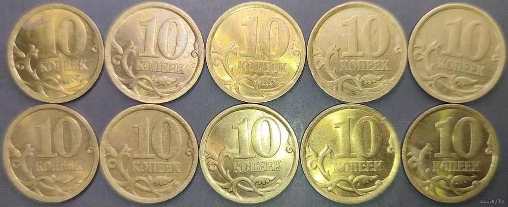 - Монета номиналом 10 копеек 2006 С-П в количестве - 10шт (все немагнитные)
