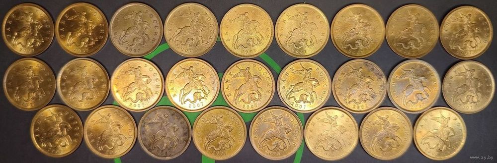 Монета номиналом 10 копеек 2007 С-П в количестве - 53шт (все магнитные)