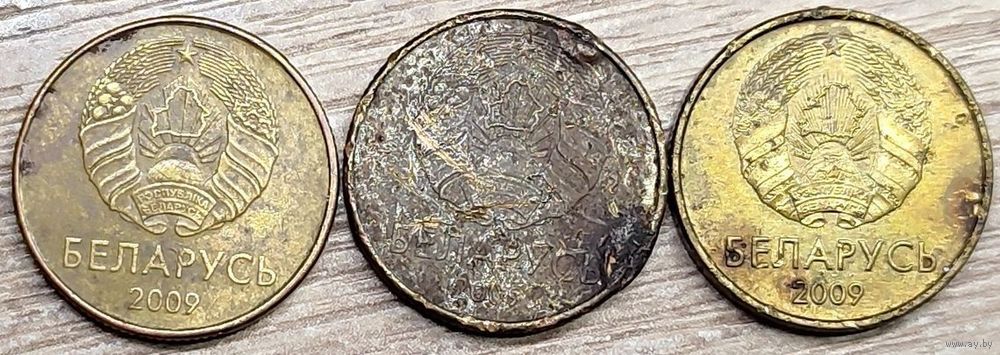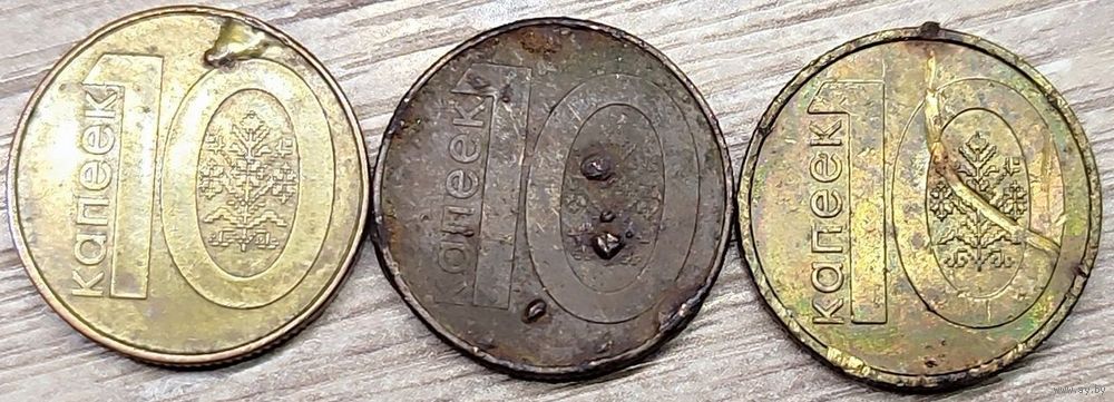 Лот монет номиналом 10 копеек 2009 РБ общим количеством - 3шт. Все три с дефектами: