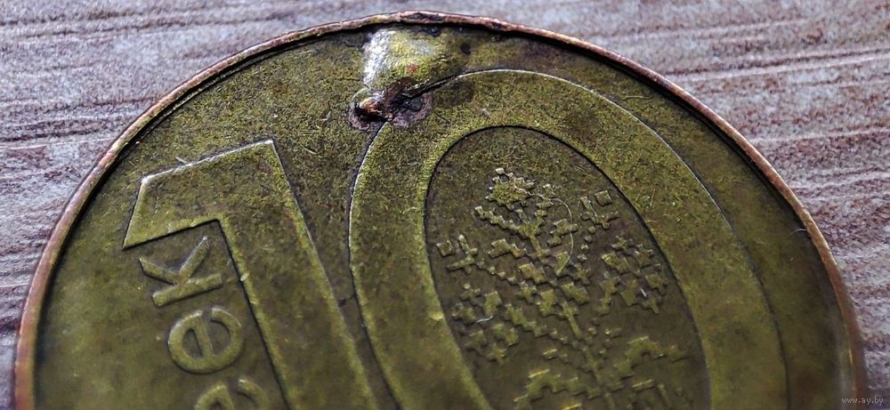 - 10 копеек 2009 РБ - 1шт (фото №5-6). Вздутие плакировки реверса