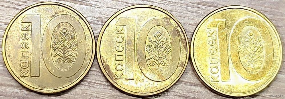 Монета номиналом 10 копеек 2009 РБ общим количеством - 3шт. Несоосность аверса и реверса около 10° у всех трёх монет