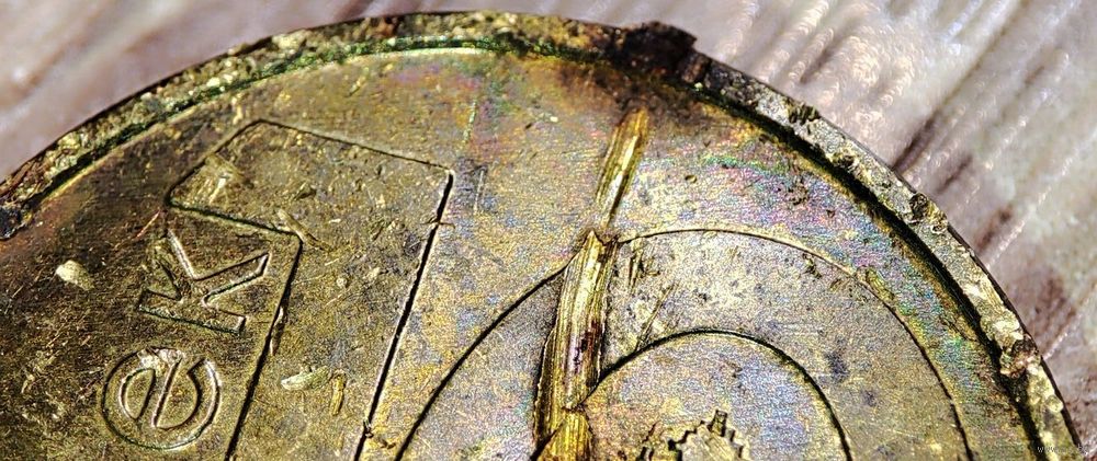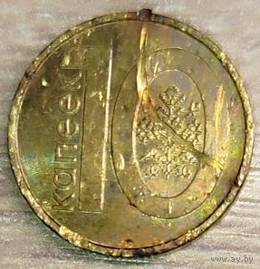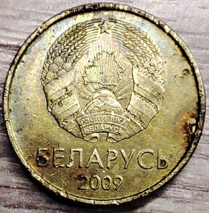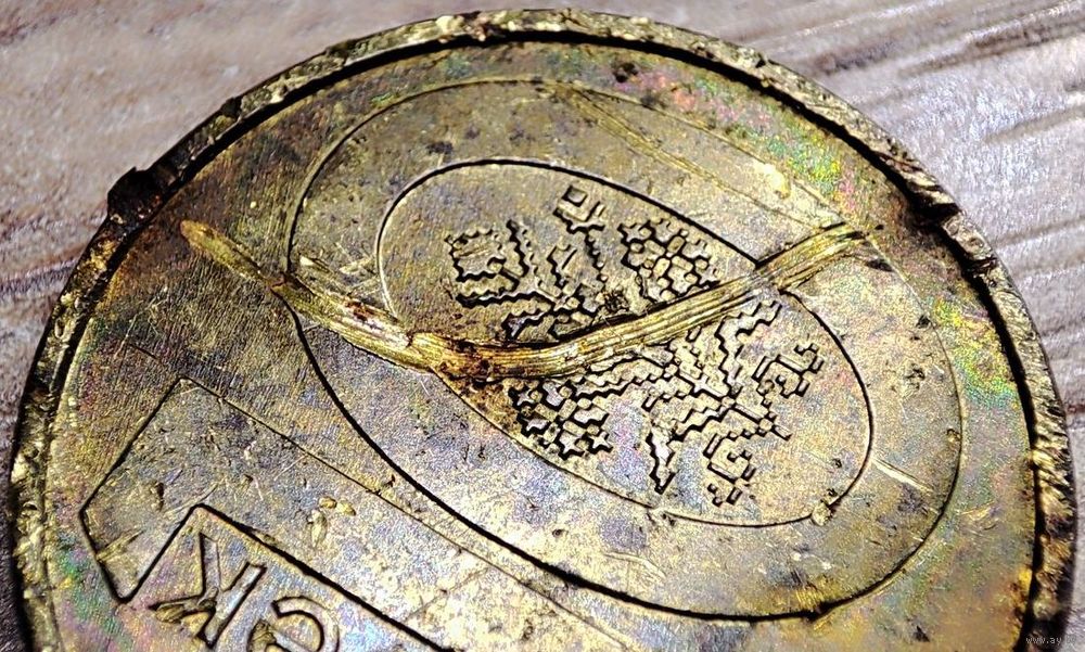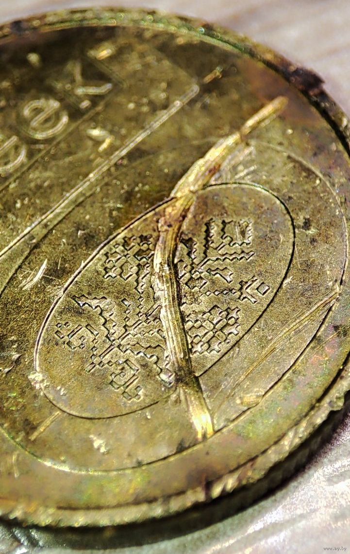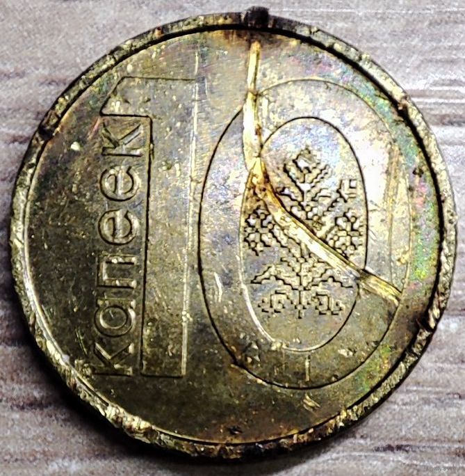 10 копеек 2009 Республика Беларусь, регулярный выпуск, магнитная. Монета вышла в обращение в 2016 году. Просто красивая глубокая царапина появившаяся во время странствия монеты по асфальтным просторам планеты