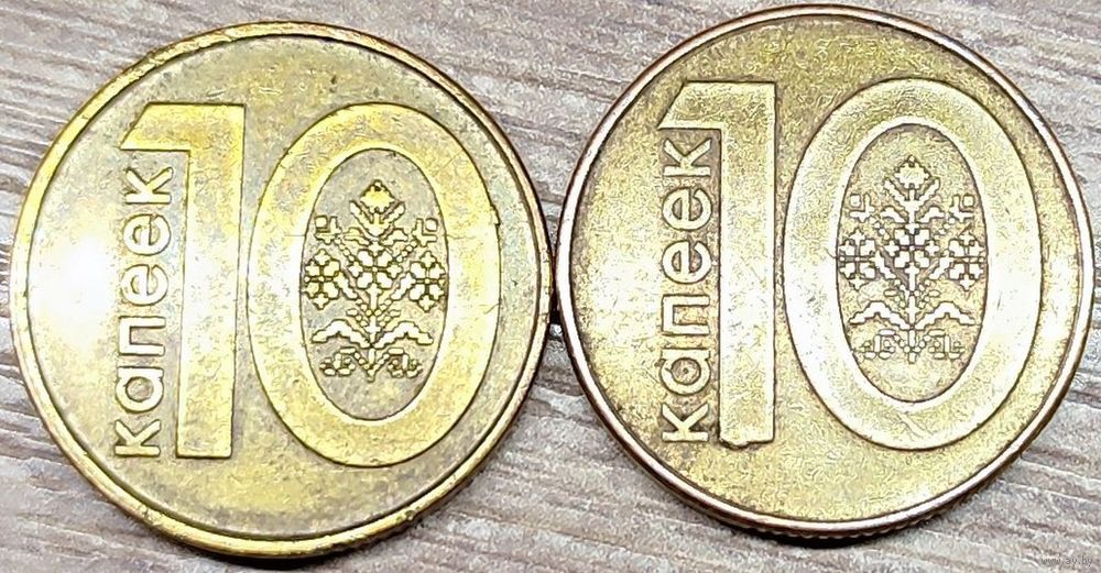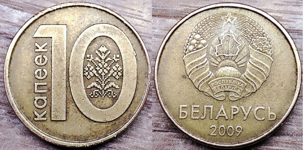 Монета номиналом 10 копеек 2009 РБ общим количеством - 2шт. Выкрошка штемпеля реверса у обеих монет