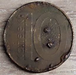 Монета номиналом 10 копеек 2009 РБ в количестве - 1шт (магнитная). Монета вышла в обращение в 2016 году. Вздутия верхнего слоя плакировки аверса, реверса и гурта. У аверса "асфальтная болезнь". Монета с обеих сторон запатинирована