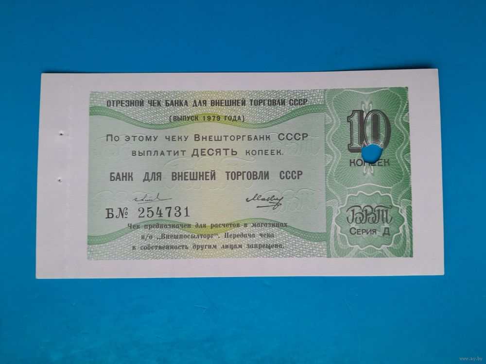 10 копеек СССР 1979 года.. Чек Внеторгбанка для магазинов Внешпосылторга. UNC. Распродажа