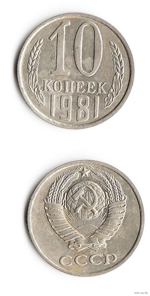 10 копеек СССР 1981 года, состояние отображено на скане.