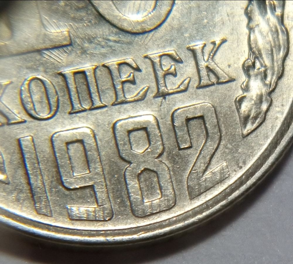 Ярко выраженный след от холостого соударения штемпелей на реверсе. Атак же какие-то штрихи на цифрах, не ясно это брак или механическое повреждение.
