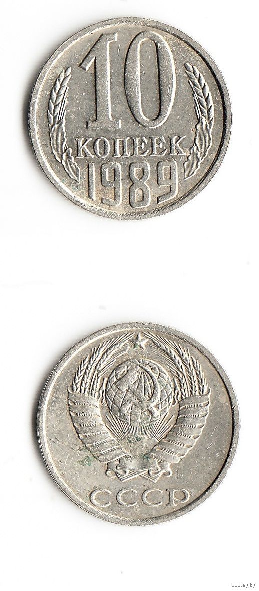 10 копеек СССР 1989 года, состояние отображено на скане.