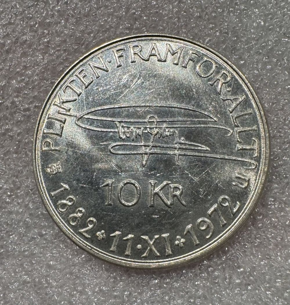 10 крон 1972 Швеция. 18 г серебра 835 пробы! Яркая!