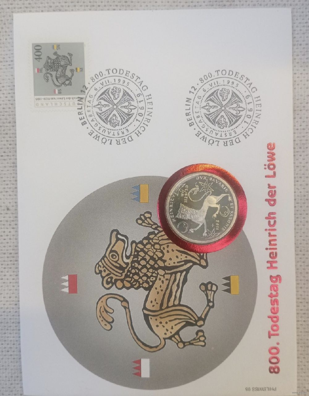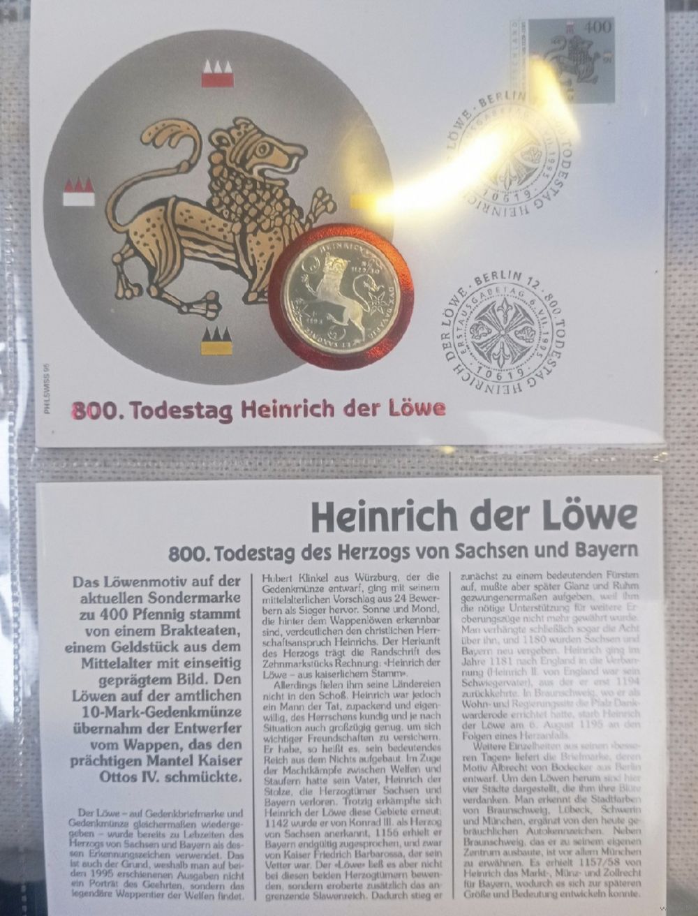 Редкий коллекционный набор, выпущенный к 800-летию со дня смерти Генриха Льва (1129–1195), герцога Саксонии и Баварии. Это высокохудожественное издание, сочетающее нумизматику и филателию.