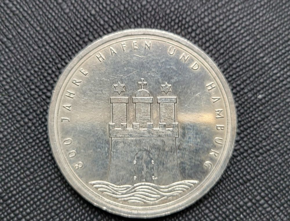 10 марок 800 лет Гамбургскому порту J ФРГ Серебро 15,5 грамма 625 пробы! ВОЗМОЖЕН ОБМЕН!