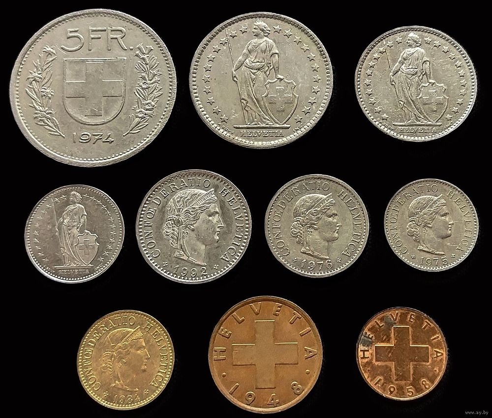 КРАСИВАЯ ПОДБОРКА МОНЕТ ШВЕЙЦАРИИ РАЗЛИЧНОГО ПЕРИОДА !