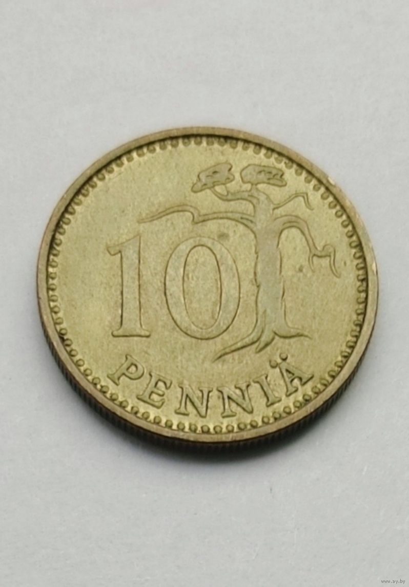 10 пенни 1965 года Финляндия, отличная, в родной патине, не частая!