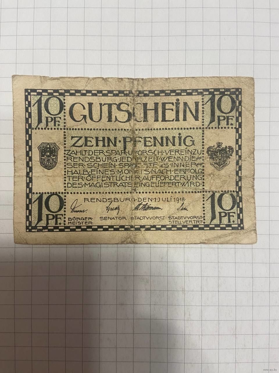 10 пфенингов (нотгельды) г. Германия.-1412