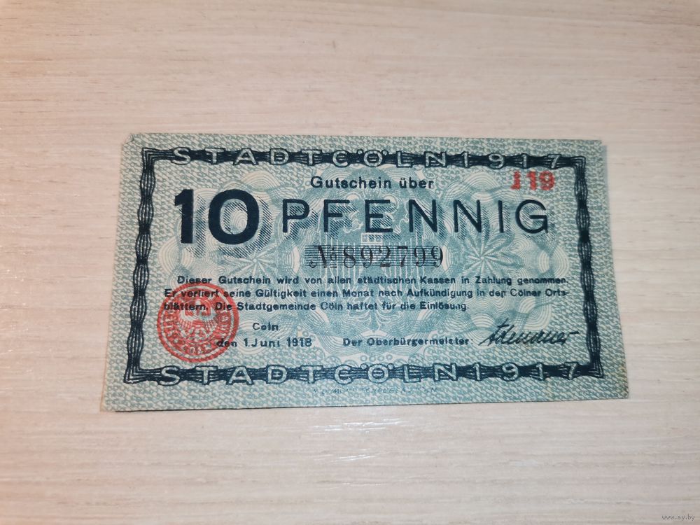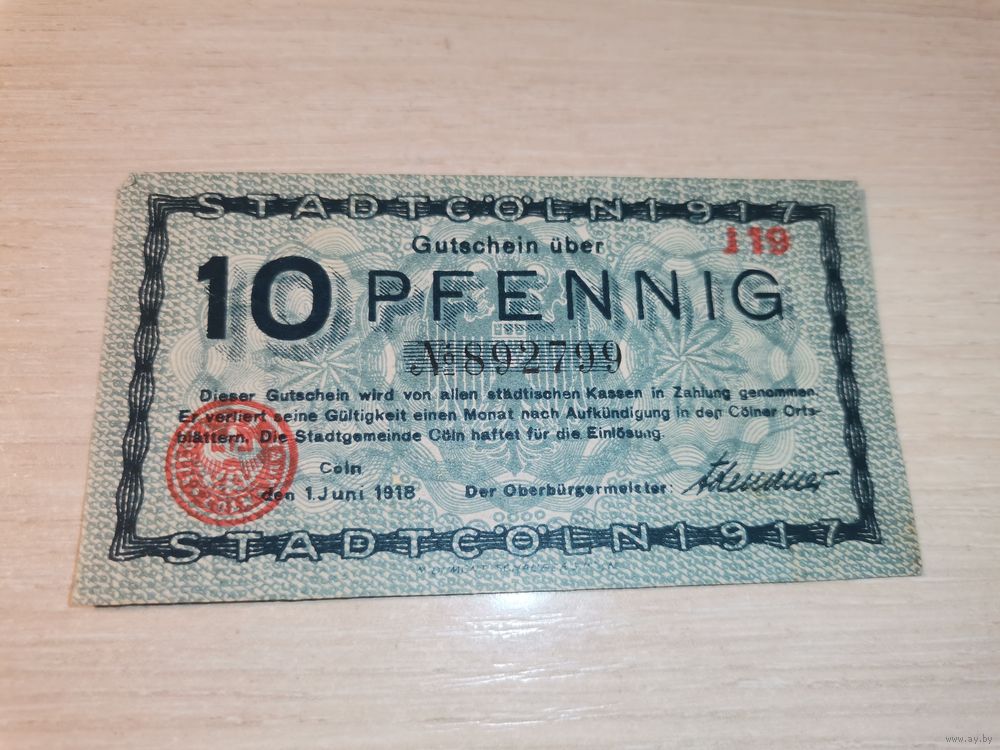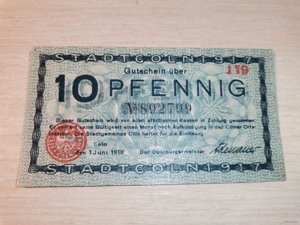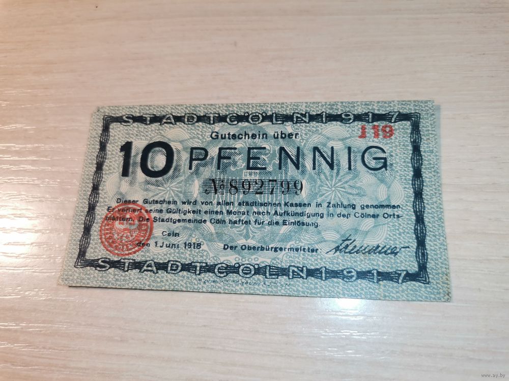 10 пфеннигов 1917 года, Кёльн, Германия.