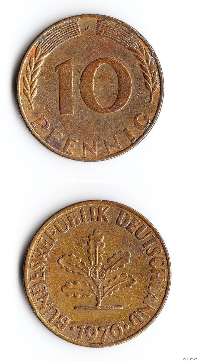 10 пфеннигов Германия 1970 года(J)