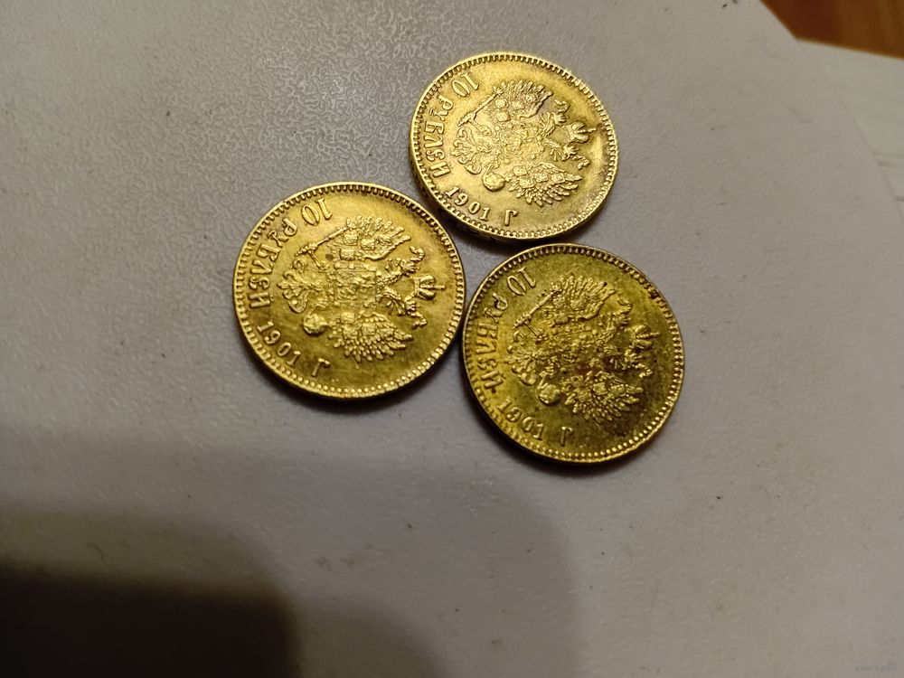 предложу хорошие копии 10 рублёвых монет 1901 года, цена указана за три монеты.