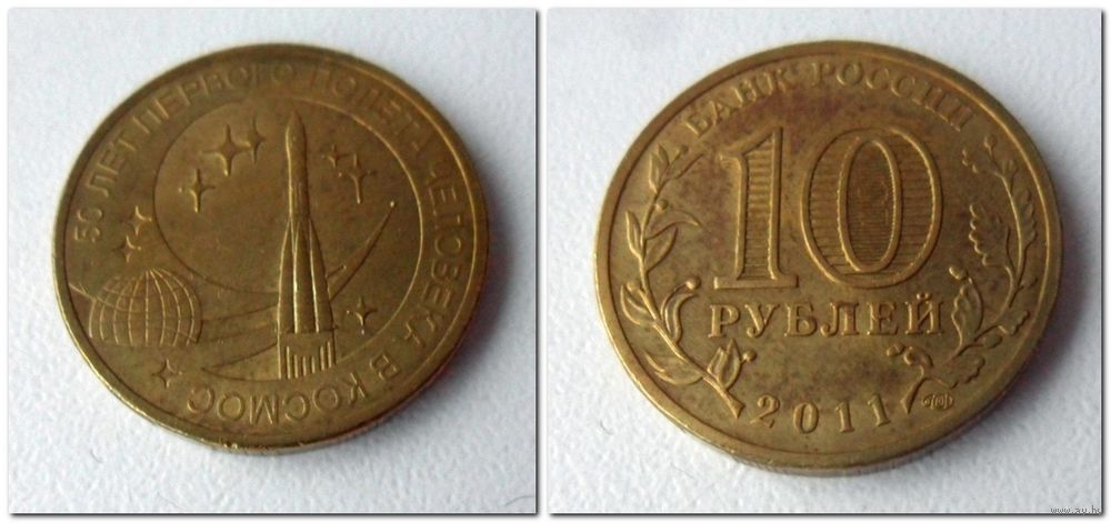 10 руб Россия 2011 года - 50 лет полета в космос