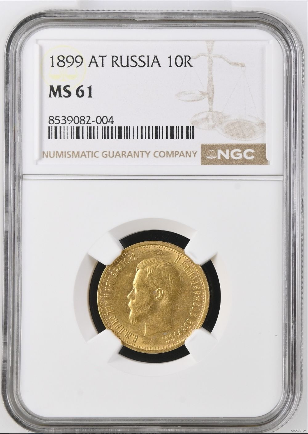 10 рублей 1899 года , в слабе ngc , грейд MS 61.
