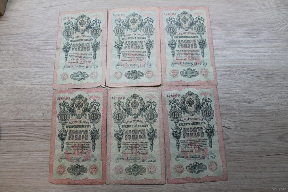 10 рублей 1909. 6 штук