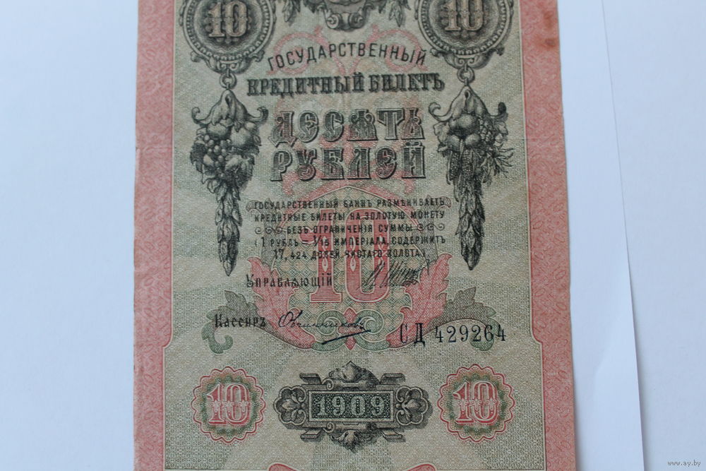 10 рублей 1909 г. Шипов Овчинников.Серия СД