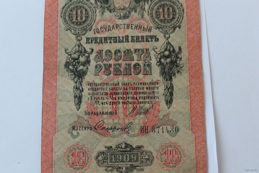 10 рублей 1909 г.Шипов/Сафронов.Серия ИН.