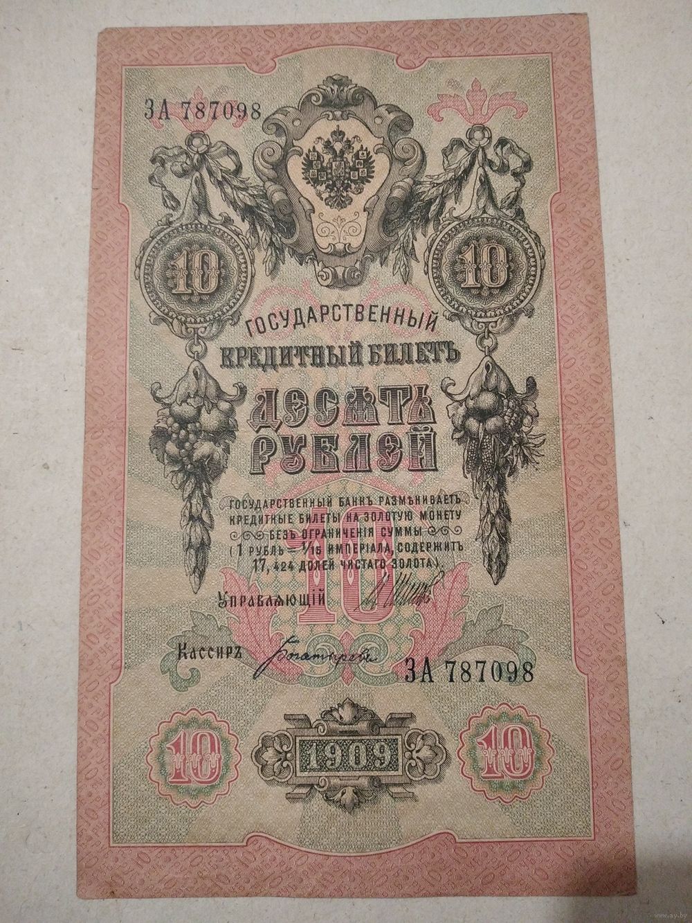 10 рублей 1909 г. ЗА 787098