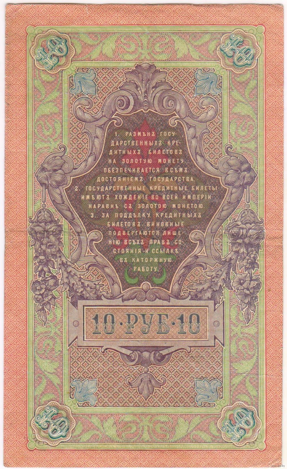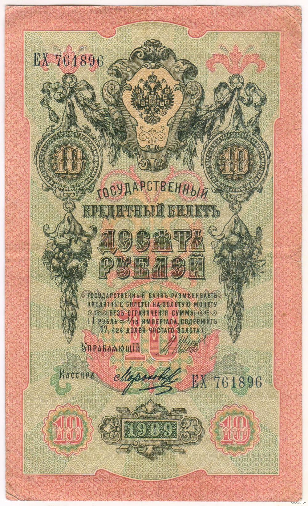 10 рублей 1909 год. Шипов Морозов ЕХ 761896