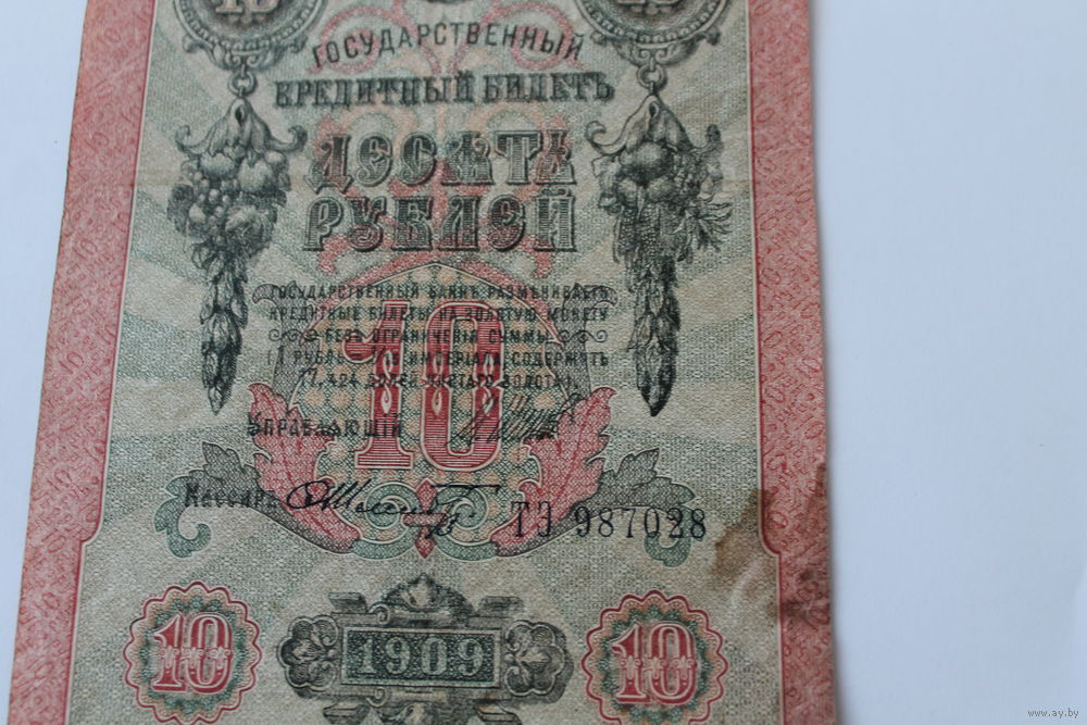 10 рублей 1909 год. Шипов-Шмидт. Серя ТЭ