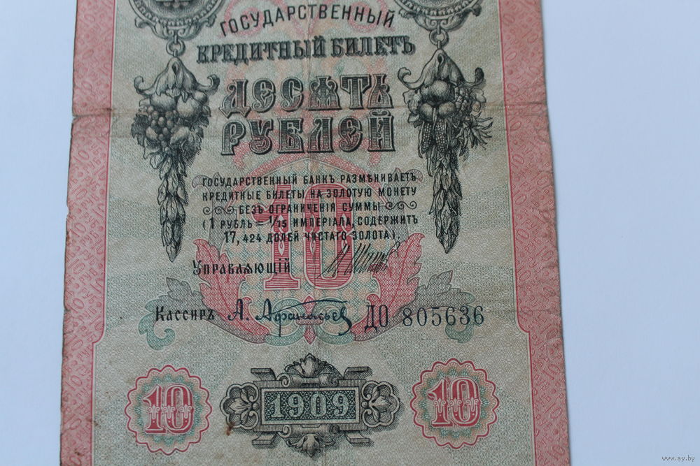 10 рублей 1909 года. Шипов - Афанасьев.Серия ДО.