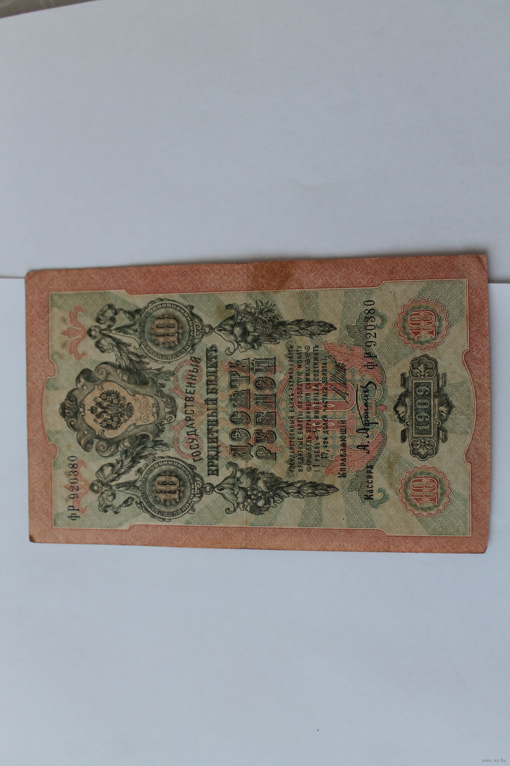 10 рублей 1909 года. Шипов - Афанасьев.Серия ФР.