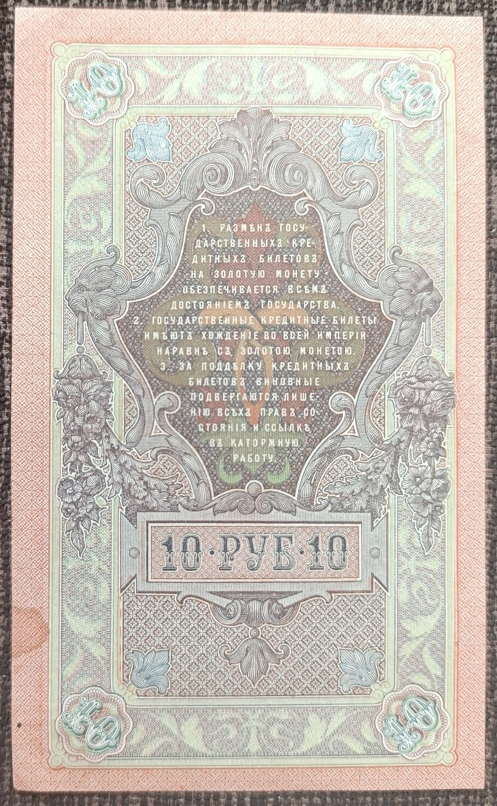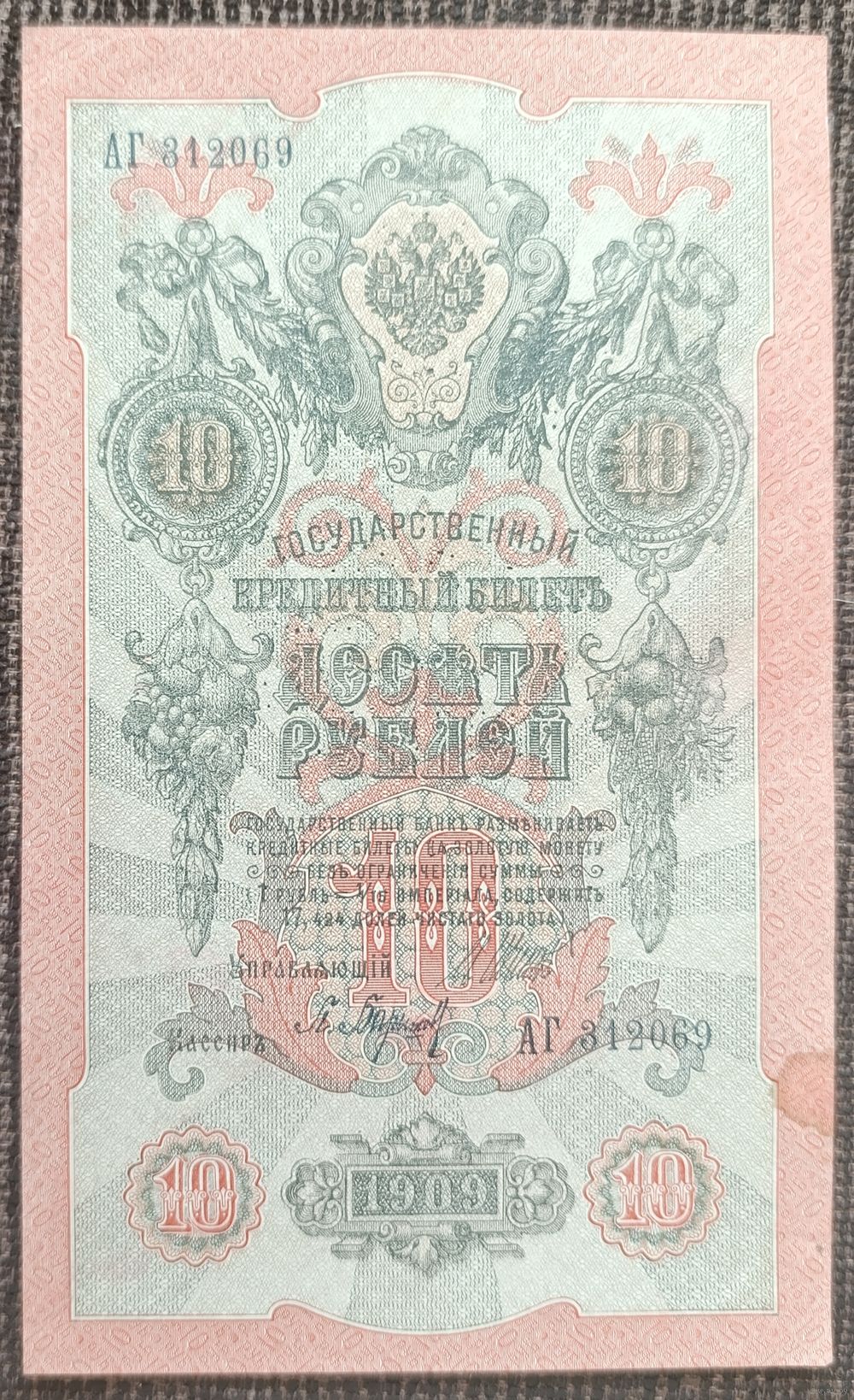 10 рублей 1909 года - Шипов-Барышев - aUNC