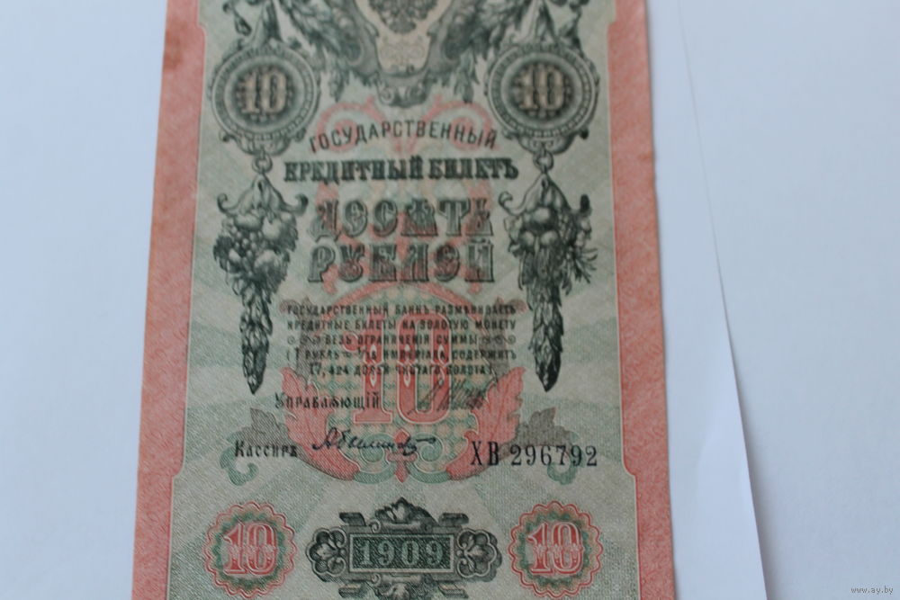 10 рублей 1909 года. Шипов - Былинский.Серия ХВ
