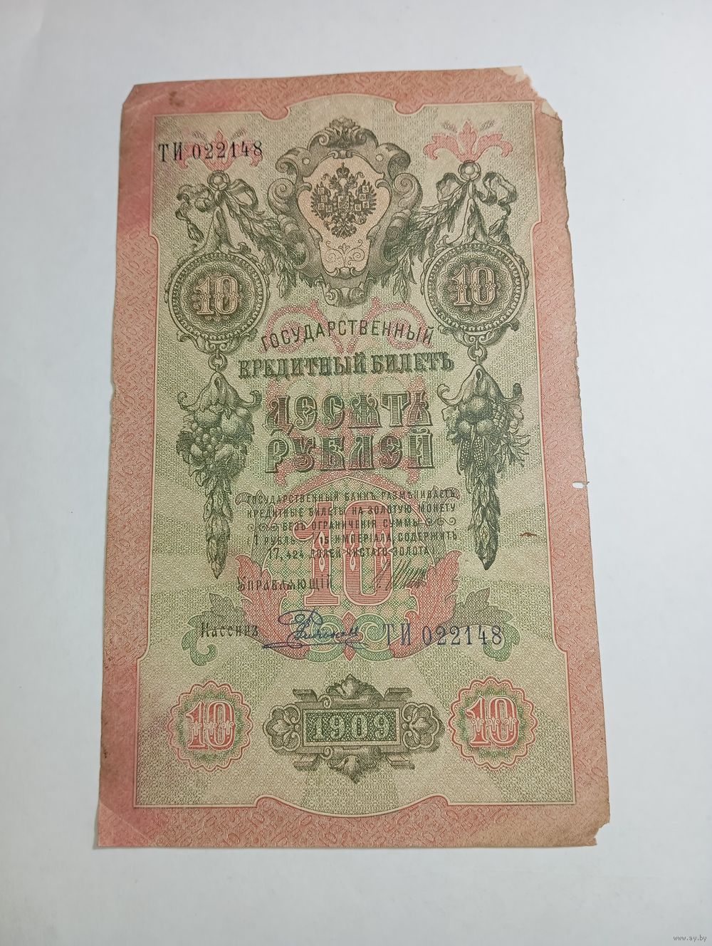 10 рублей 1909 года Шипов - Былинский ТИ 022148