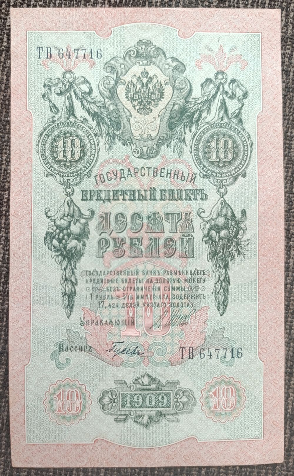 10 рублей 1909 года - Шипов-Гусев - UNC