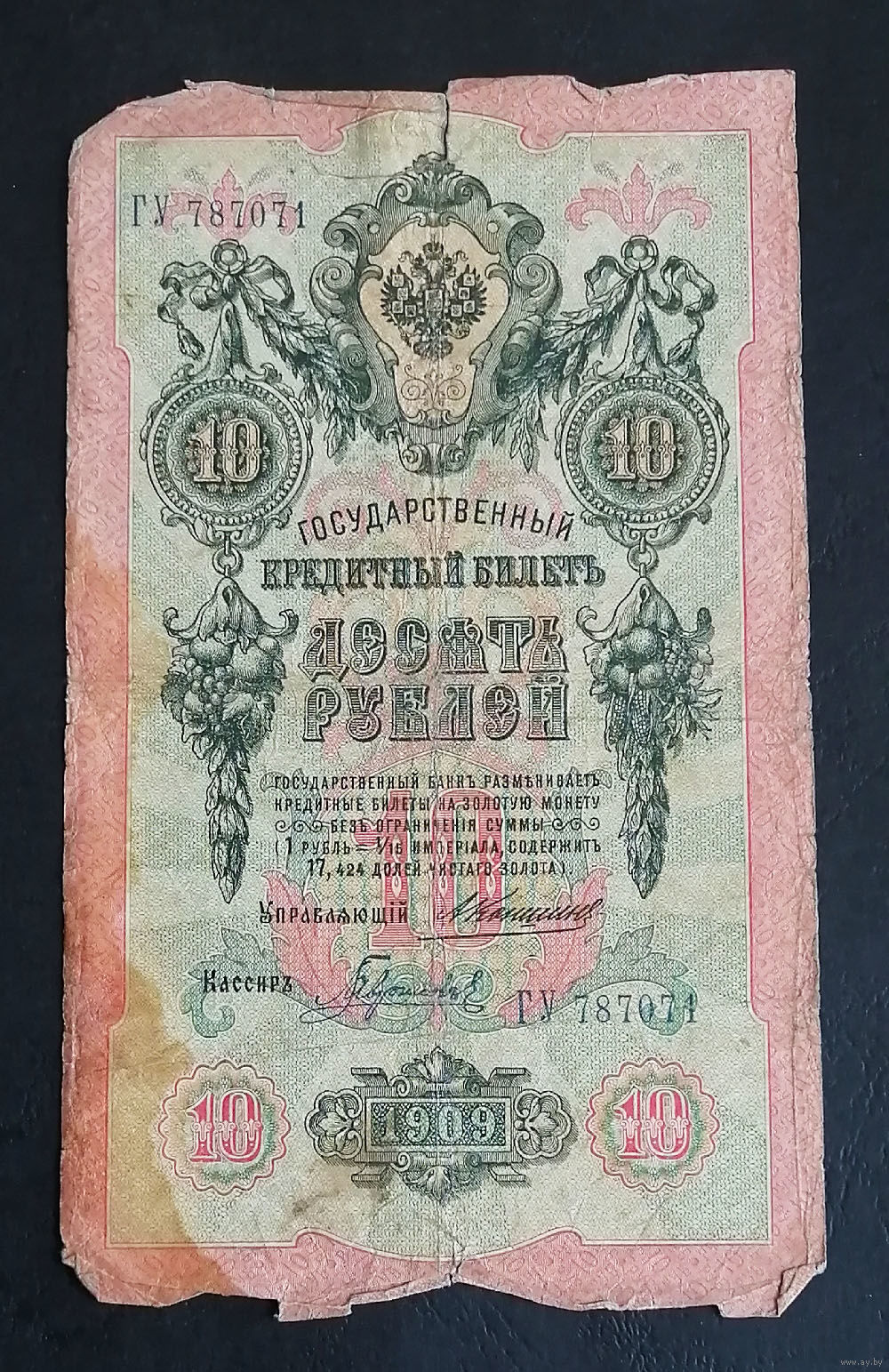 10 рублей 1909 Коншин Гаврилов ГУ 787071 #0141