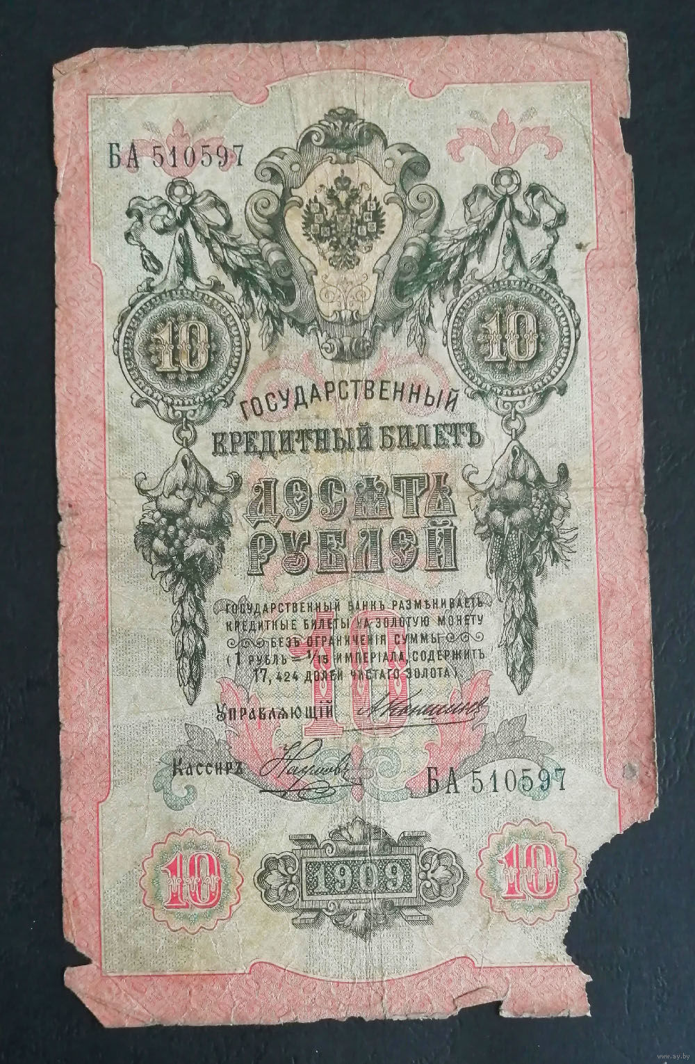 10 рублей 1909 Коншин Наумов БА 510597 #0128