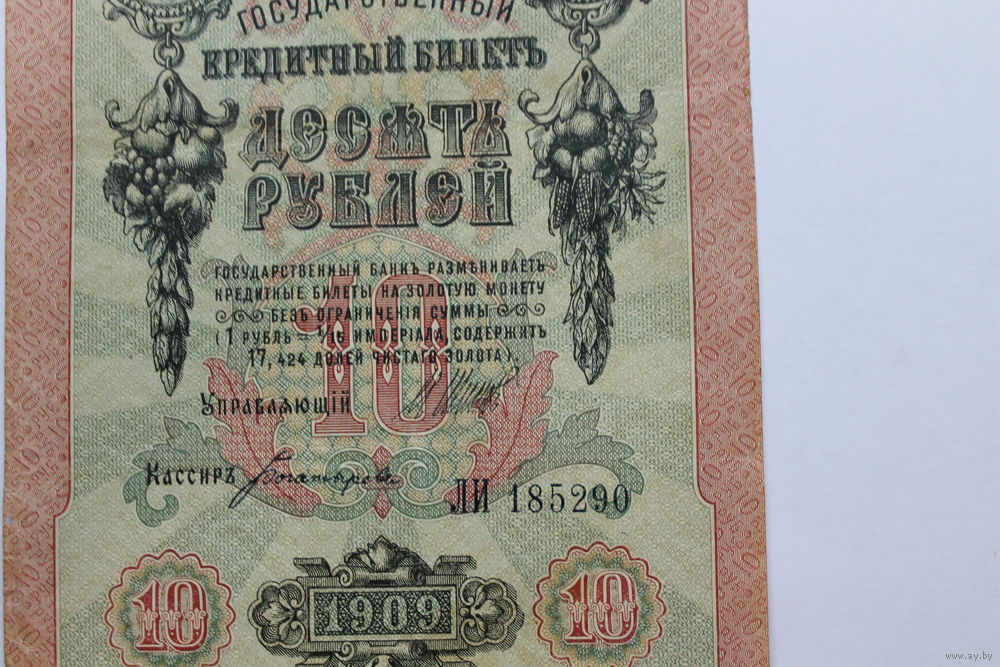 10 рублей 1909 Шипов/Богатырев. Серия ЛИ