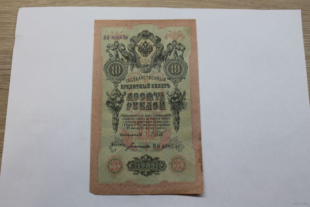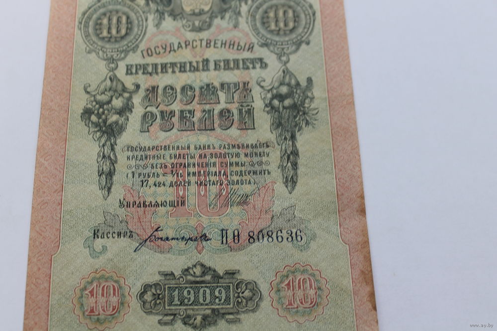 10 рублей 1909. Шипов/Богатырев.Серия ПО