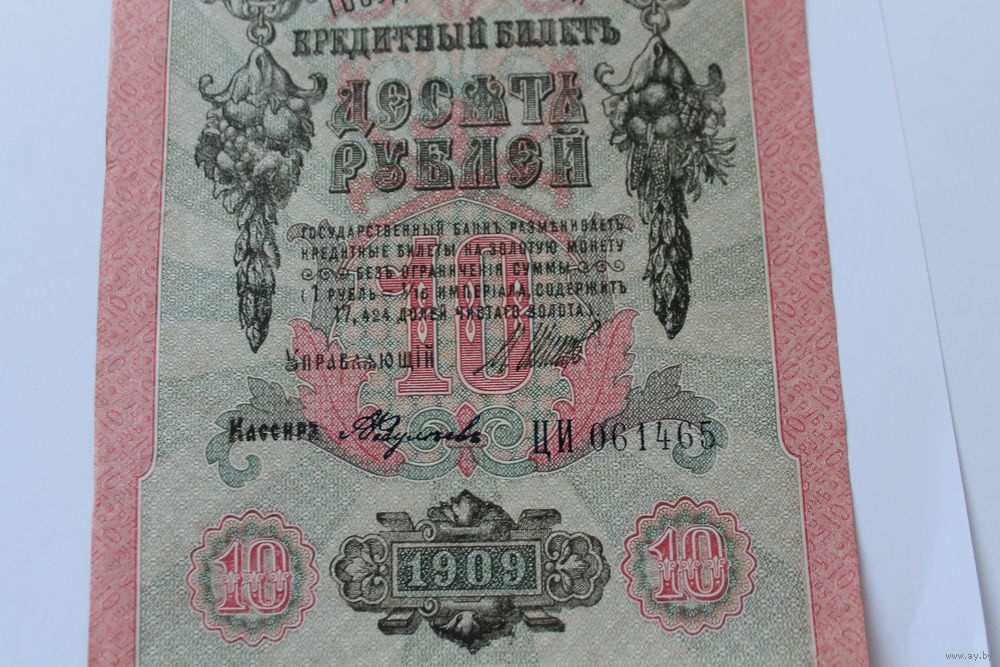 10 рублей 1909. Шипов- Федулеев.Серия ЦИ