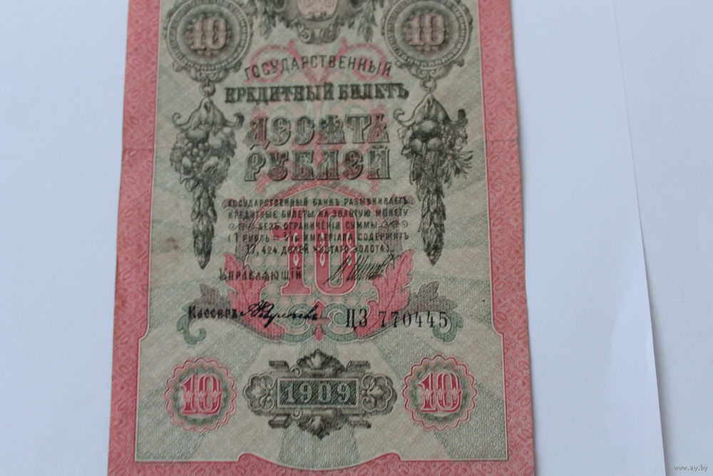 10 рублей 1909. Шипов- Федулеев.Серия ЦЗ