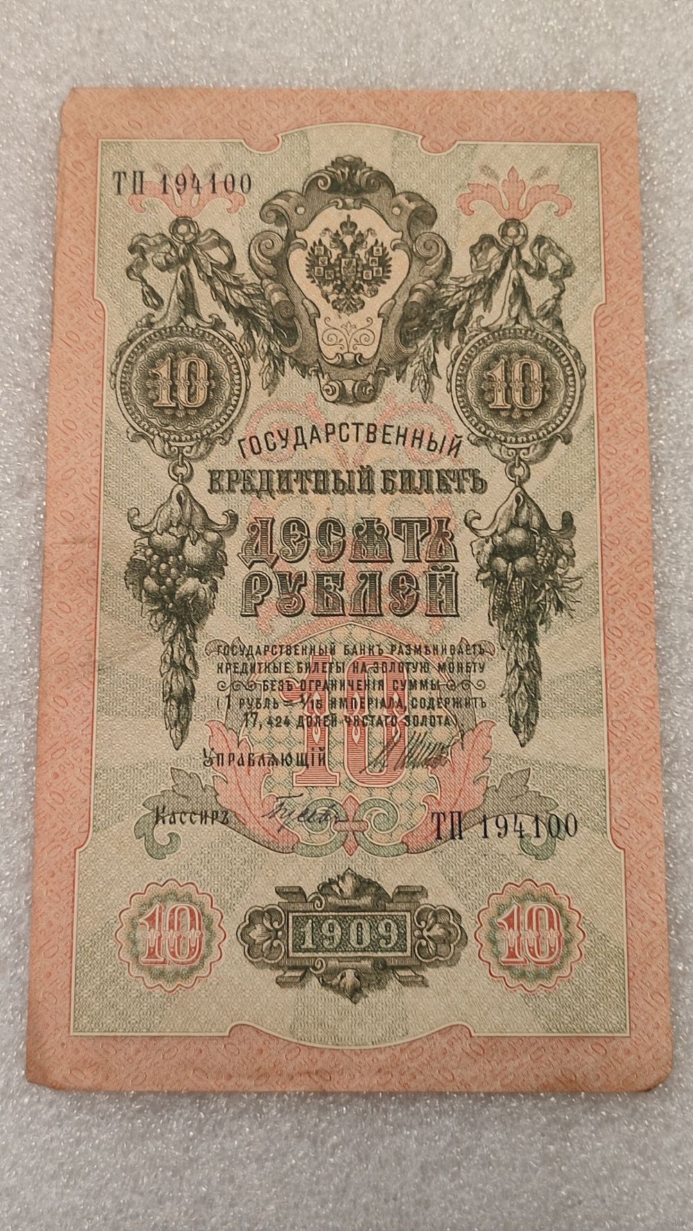 10 рублей 1909 Шипов-Гусев