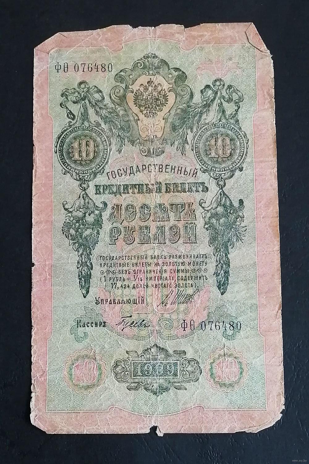 10 рублей 1909 Шипов Гусев ФО 076480 #0132