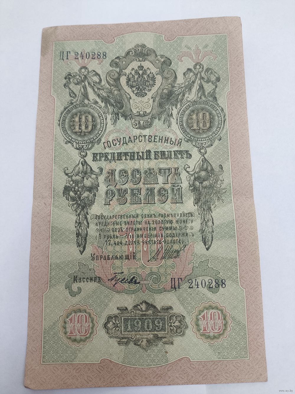 10 рублей 1909. Шипов -Гусев . Серия ЦГ.