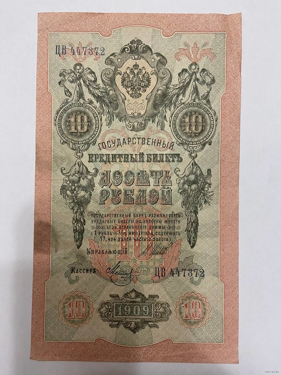 10 рублей 1909 Шипов Метц ЦВ 447372 -1511