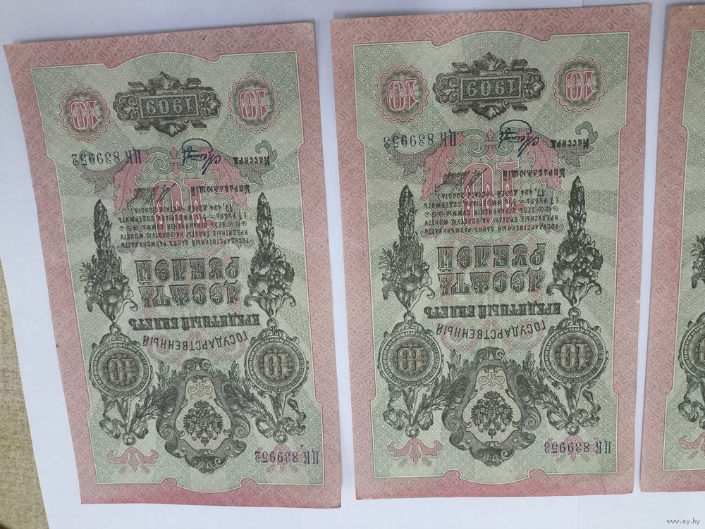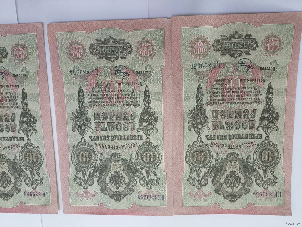 10 рублей 1909. Шипов -Метц. Серия ЦК. 4 номера подряд .