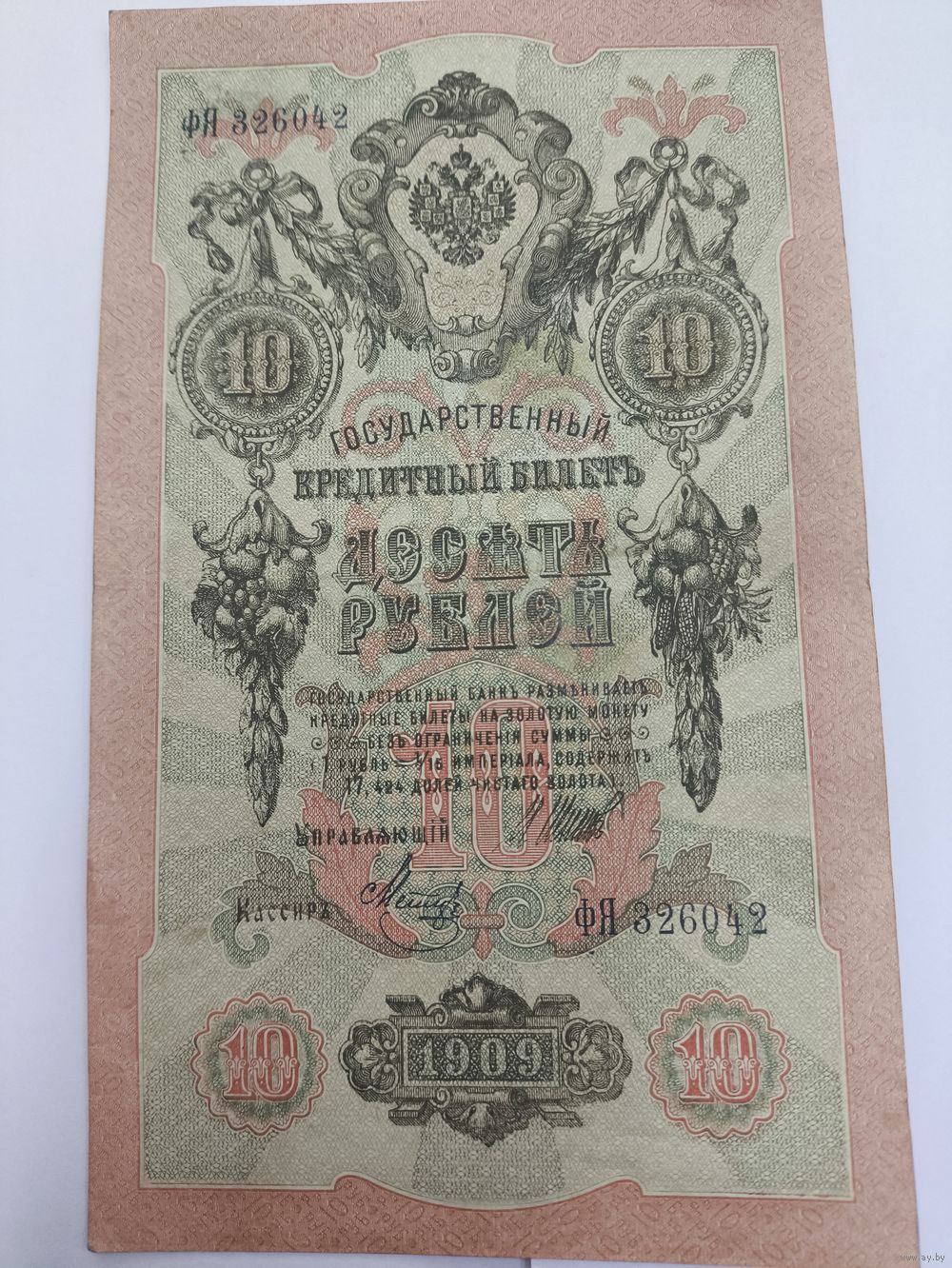 10 рублей 1909. Шипов -Метц. Серия ФЯ.