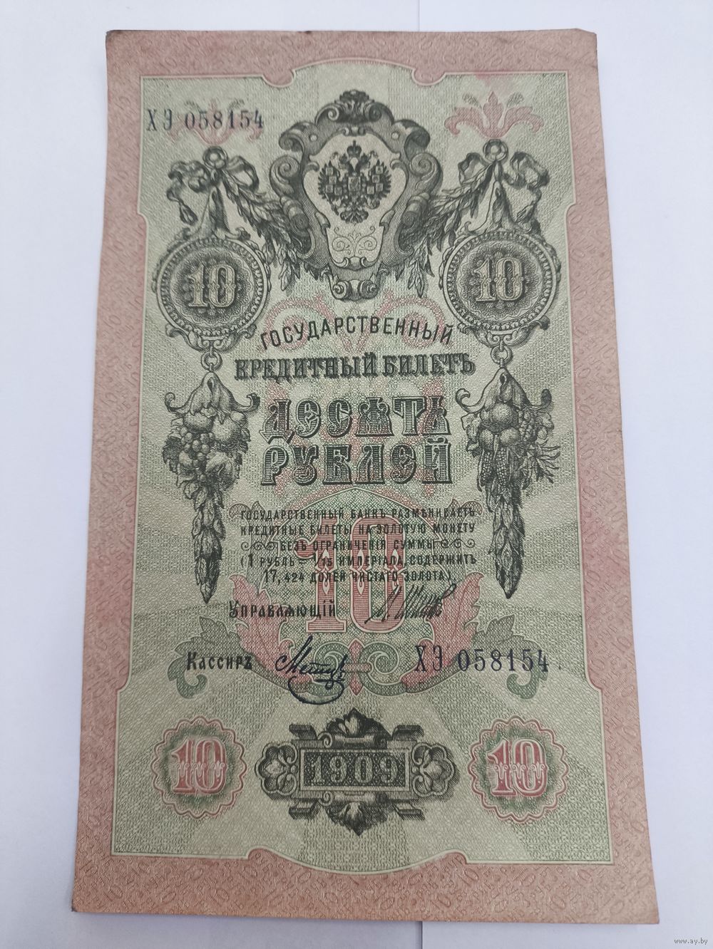 10 рублей 1909. Шипов -Метц. Серия ХЭ