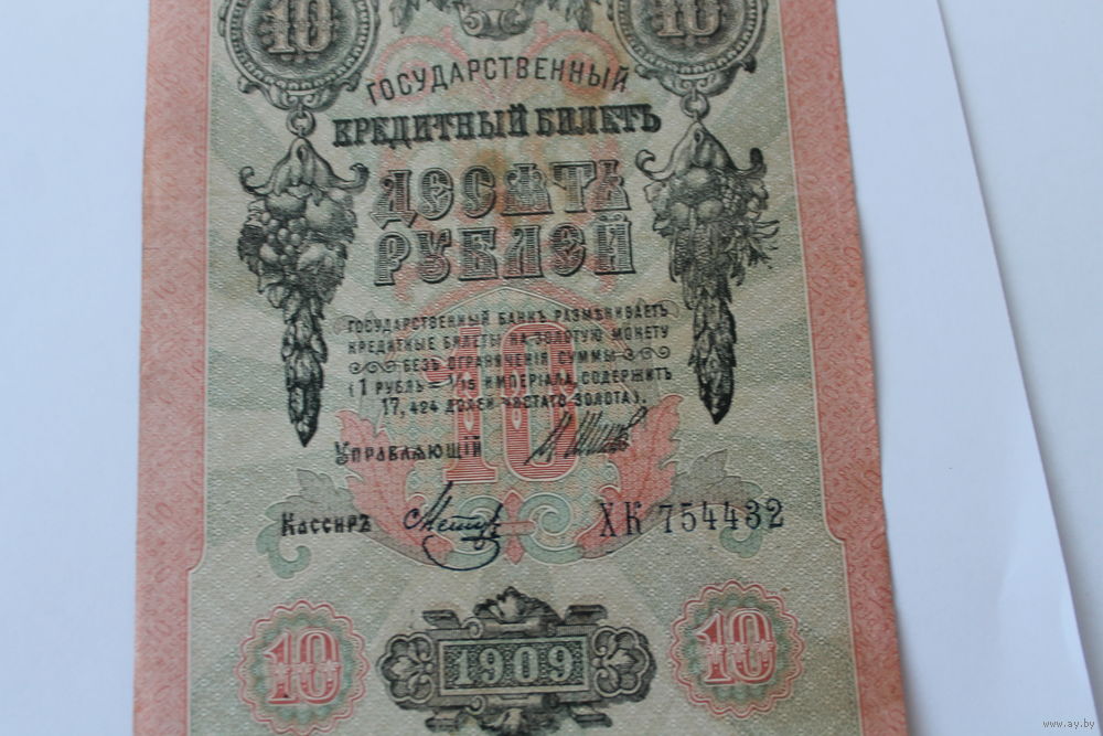 10 рублей 1909.Шипов - Метц.Серия ХК