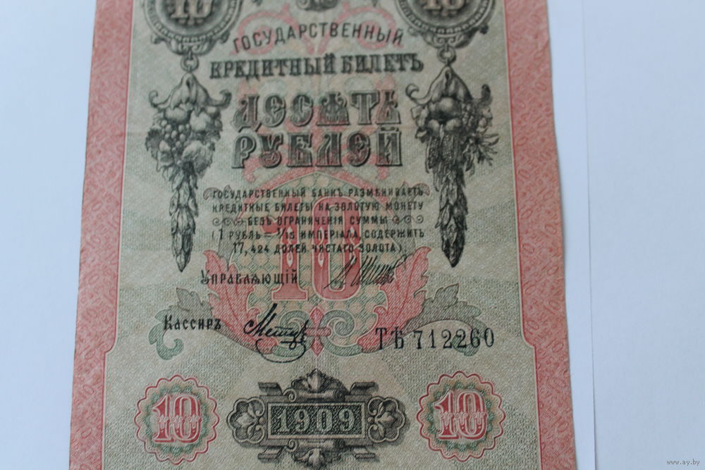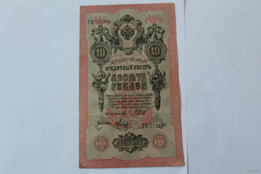 10 рублей 1909.Шипов - Метц.Серия ТЪ